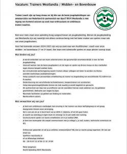 Trainer/coach zijn op hoog niveau en bij één van de beste jeugdopleidingen van amateurclubs van Nederland én partnerclub van Ajax!? RKVV Westlandia is met ingang van komend seizoen op zoek naar enthousiaste en ambitieuze trainer/coaches.
